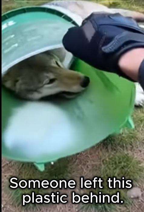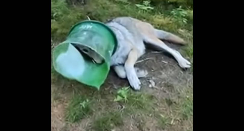 I carefully kept my distance at first, trying to understand the situation. The wolf was exhausted, its movements becoming weaker with each passing moment. The plastic container was tightly stuck, making it impossible for the animal to free itself. It was a silent struggle against something so simple — yet so deadly. I knew I had to act.