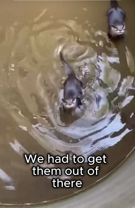 A small group of baby otters, trapped and struggling near the edge of the water. They were stuck between debris and slippery rocks, unable to climb out on their own. The water level made it dangerous — one wrong movement, and they could be swept away.