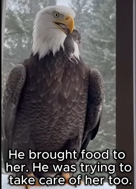 Just a few feet away stood another eagle—watching, alert, unmoving. He could have flown away at any moment. He had the strength, the freedom. But he didn’t. Every time she tried to move and stumbled, he was there—stepping closer, circling, never letting her out of his sight. It wasn’t instinct alone. It felt like something deeper. Hours passed, and still he stayed.