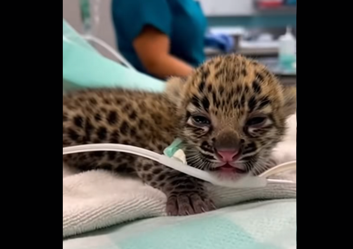 The baby leopard was weak, barely moving. Its breathing was shallow, its body limp from exhaustion. Whatever had happened before this moment, it had clearly taken everything out of it.