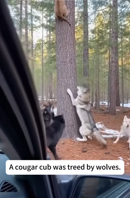 By the time the cougar realized what was happening… it was already too late. He wasn’t alone. From the edges of the forest, shapes began to emerge. One wolf. Then another. Then more. A full pack, moving with coordination and patience, their eyes fixed on a single target. Him. The cougar froze, muscles tightening, instincts firing all at once. He understood the situation immediately. Wolves hunt as a team. They don’t rush blindly—they surround, they pressure, they wait for weakness. And now, he was at the center of it. The air grew heavy with tension. The wolves spread out, cutting off escape routes. Low growls echoed through the trees, a chilling signal of what was coming. They weren’t just hunting—they were calculating. The cougar let out a deep, warning snarl. This was not prey. This was a fight. For a moment, time seemed to stand still. Predator faced predators. Silence stretched between them like a drawn bowstring, ready to snap. Then—movement.