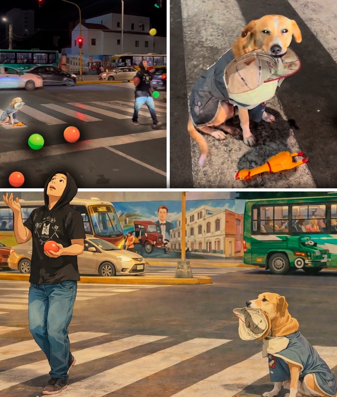 Cars stopped and went with the rhythm of the traffic light, and in the middle of it all, a young man stood juggling—tossing balls into the air, one after another. Each movement wasn’t just skill… it was survival. A way to earn a few coins and make it through another day.