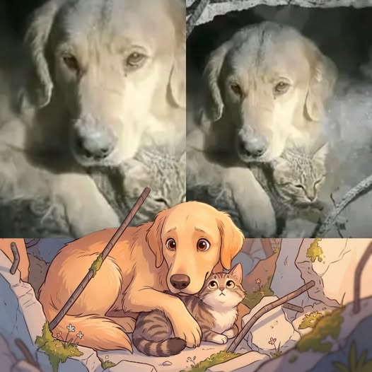 Beneath his small, trembling body… he was protecting a घायल little kitten. 🐱💔