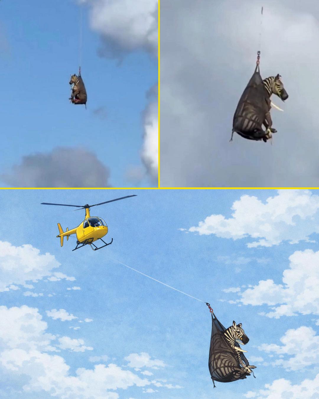 A zebra… flying home.