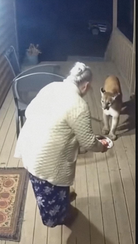 Then one night, everything changed. His phone buzzed with a camera notification. Curious, he opened the live feed—and in an instant, his stomach dropped. There, just outside his grandmother’s house, was no ordinary cat. It was a mountain lion. Fully grown. Powerful. Wild. Standing just a few feet from the place his grandmother called home… while she calmly fed it as if it were just another passing stray. Panic hit immediately. He tried calling her—no answer.