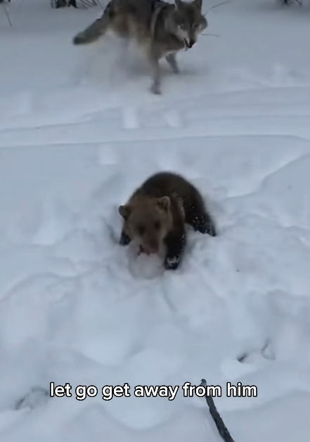 Unlike adult bears, which can defend themselves with immense strength, the cub had no such advantage. Its size, inexperience, and fear made it an easy target. The wolf, driven by instinct and survival, appeared focused and relentless, closing in step by step.