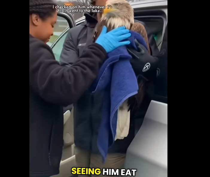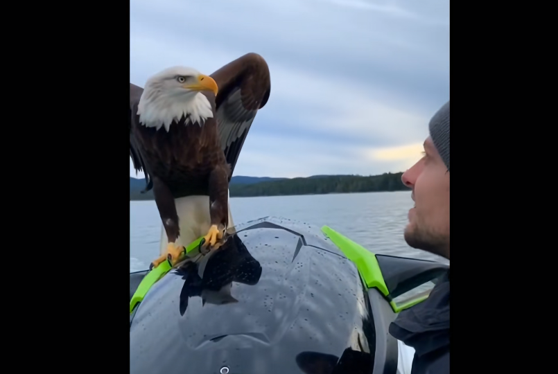 The bear, now distracted and uncertain, eventually backed off, disappearing into the surrounding forest. The eagle, though shaken and exhausted, survived the encounter. Wildlife experts note that such interventions are extremely rare and often risky, as approaching large predators like bears can be dangerous even for humans. However, in this case, the timing and quick reaction played a crucial role in preventing a likely fatal outcome.