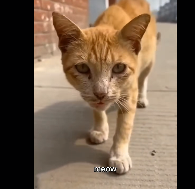 The cat was in an alarming condition—extremely thin, with its ribs clearly visible, and movements so weak that it could hardly walk. It was evident that it had been struggling for survival for a long time, likely without consistent food, shelter, or care. Passersby had likely seen it before, but on this day, someone finally stopped. The moment they approached, it was clear how fragile the situation was. The cat did not run away. It simply stayed still, too exhausted to react with fear or escape. Its eyes reflected both fatigue and quiet resignation, as if it had already accepted a life of suffering.