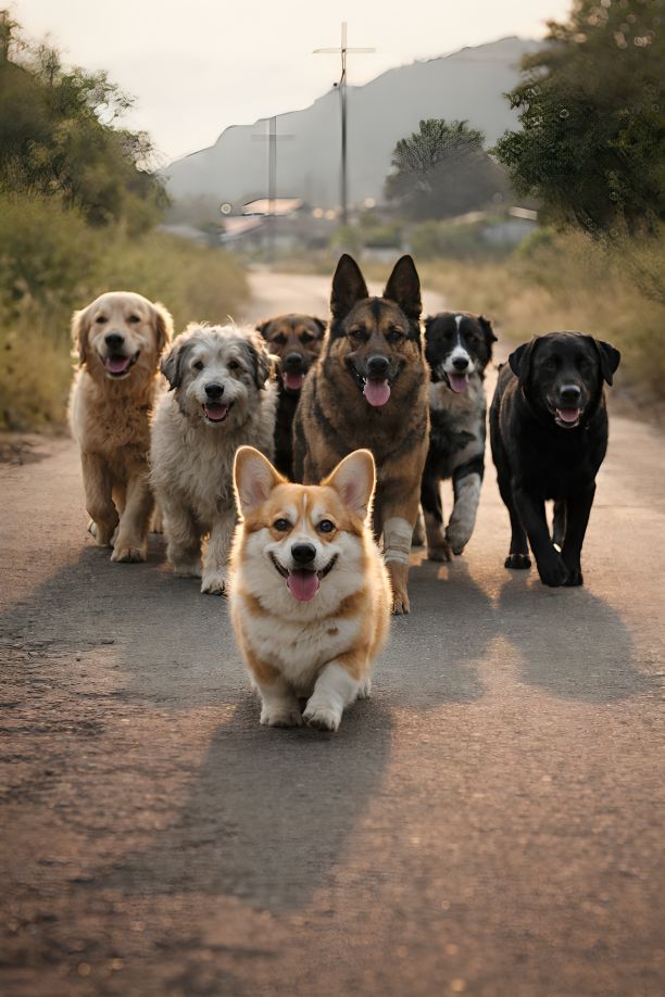 The corgi led from the front, but every few steps, he looked back—counting… checking… making sure no one was missing. The others formed a quiet circle around the injured one, protecting him, guiding him, proving something simple and powerful: