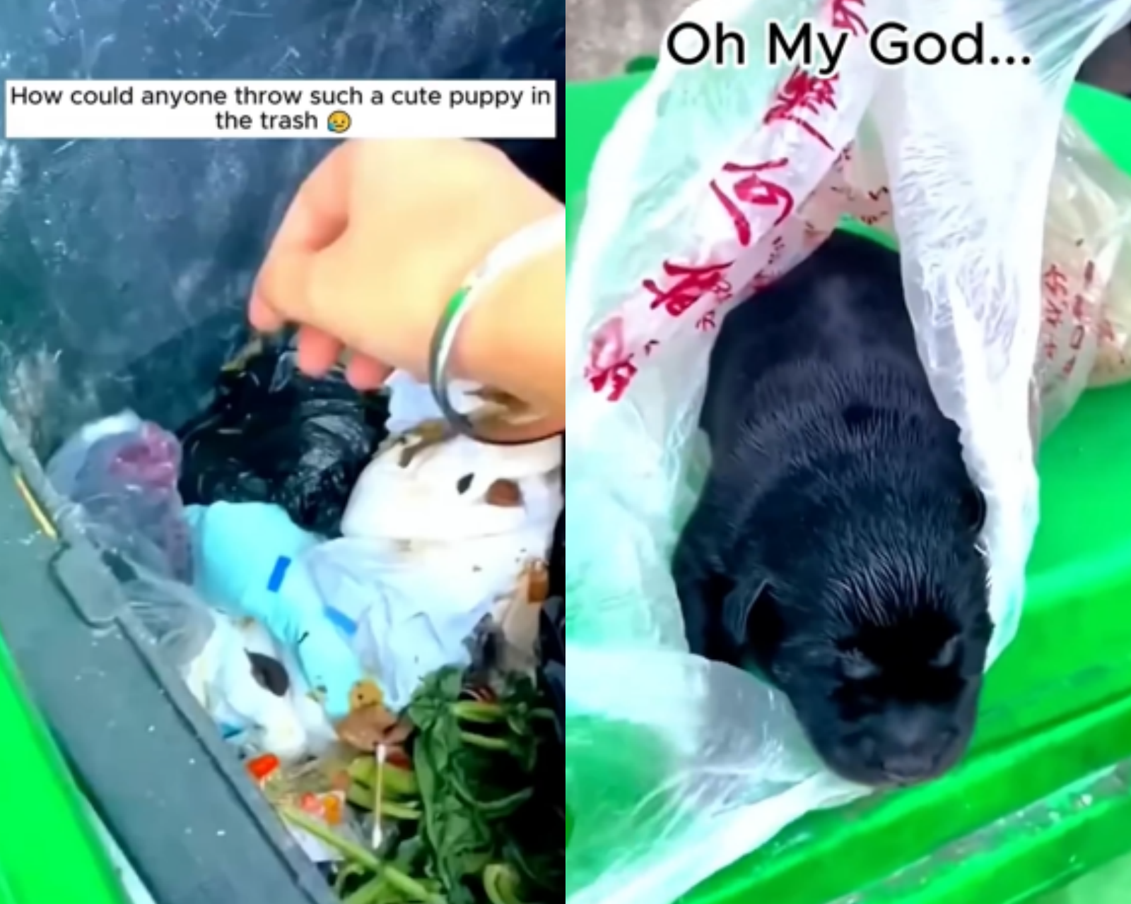 Inside, hidden among discarded things, was a tiny puppy—alone, frightened, and fighting to survive. 💔