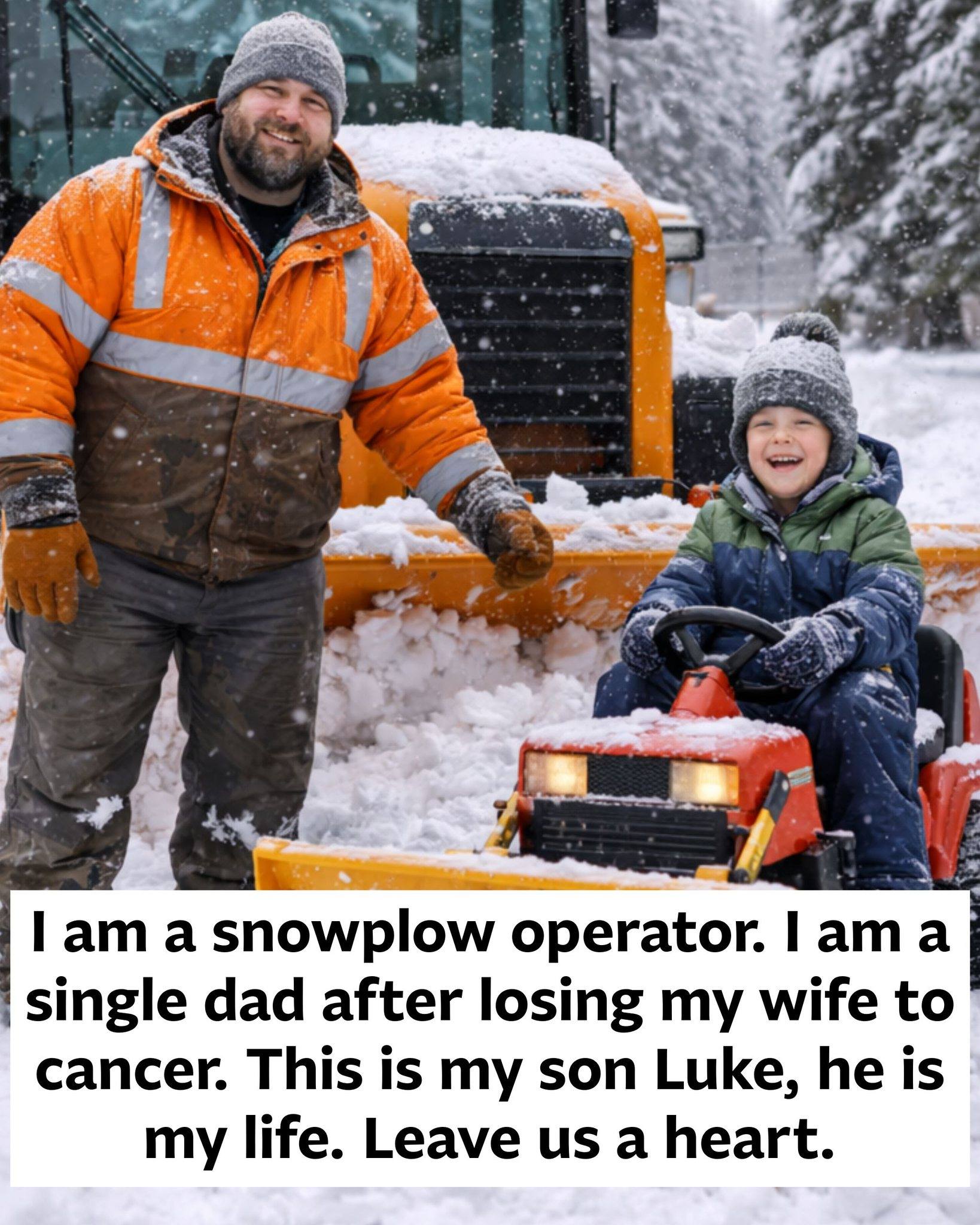 He smiles when it matters. He listens. He stays strong, even on the days when the grief feels heavier than the snow he pushes aside. Because sometimes, all it takes is one small laugh from Luke—one moment of pure, innocent joy—to remind him why he keeps going. The snow keeps falling. But so does his strength.