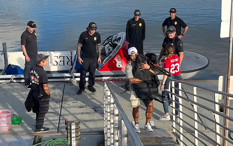 When she finally reached shore, everything else disappeared—the noise, the fear, the chaos. There was only relief. And then, the moment her family had been holding onto without knowing if it would ever come: Sadie, back in their arms. Safe.