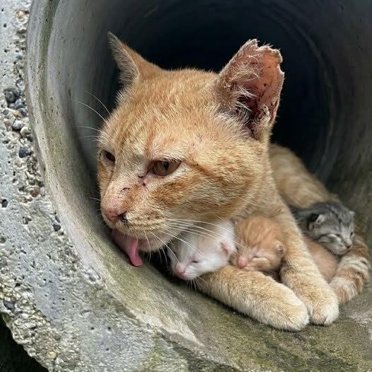 Four newborn kittens were found abandoned in a cold, muddy ditch.