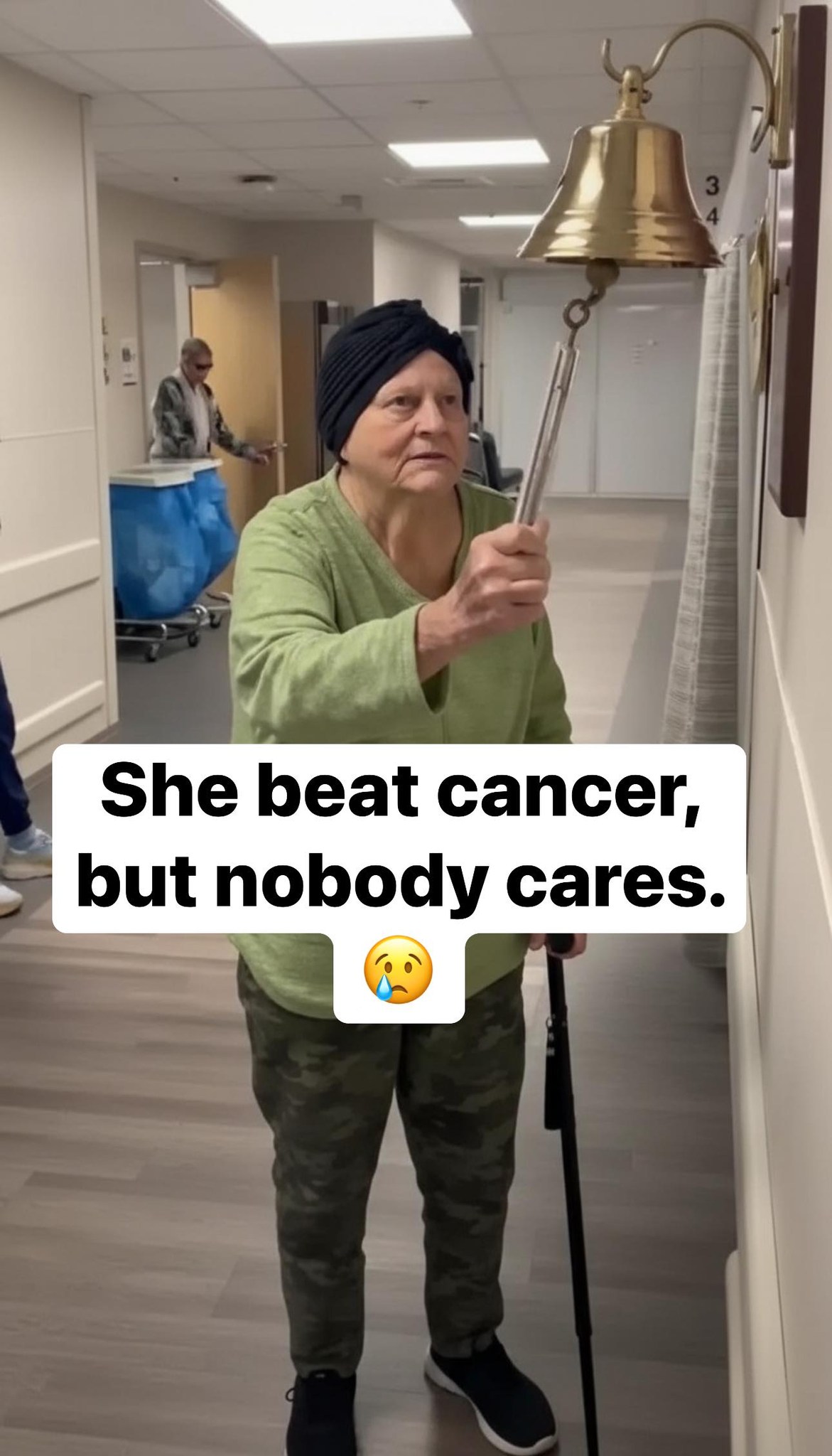 There are victories that don’t just belong to one person—they belong to every breath they fought to take, every night they survived, and every moment they refused to give up. This is one of those victories. She stood in a hospital corridor, not as someone beginning treatment, but as someone stepping out of it. And in front of her was a simple bell—something many people see as symbolic, but only a few truly understand. Because that bell does not represent celebration alone. It represents survival. Her journey was not easy. It was filled with pain that doesn’t always have words, fear that arrives quietly in the middle of the night, and exhaustion that sinks deeper than the body—it reaches the soul.