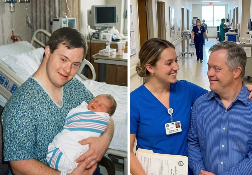 When Olivia was born, her life began with both love and loss. Her mother passed away shortly after giving birth, leaving her in the arms of one man — her father, Michael. But from the very beginning, people questioned whether that would be enough. Michael has Down syndrome. Doctors and social workers quietly expressed concern. Could he handle the responsibility? Could he raise a child on his own? The doubts were there, spoken and unspoken. But Michael didn’t argue. He didn’t try to convince anyone with words. Instead, he picked up his daughter, brought her home, and began to learn — step by step — how to be the father she needed.