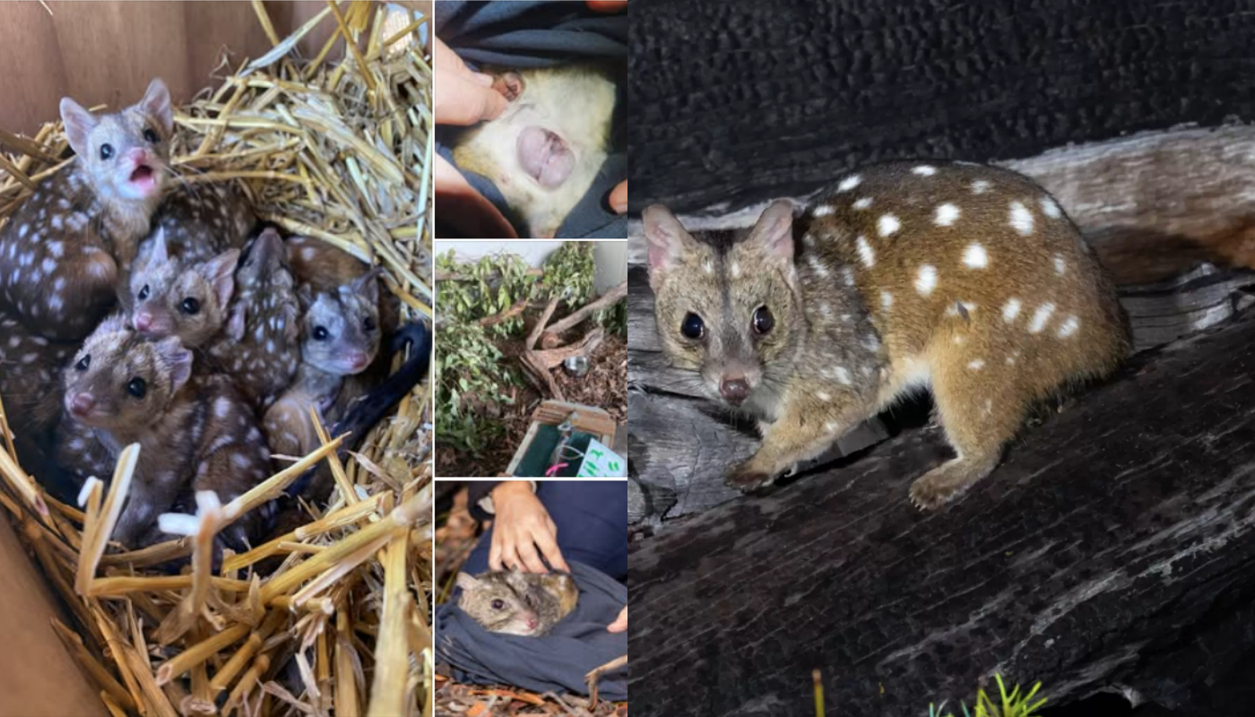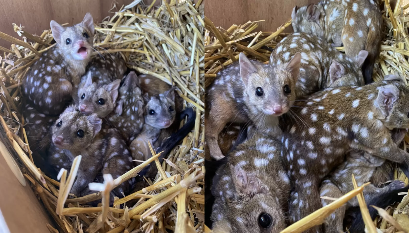 The nest lay partially concealed beneath leaves and tall grass. Inside, several small animals huddled together, their bodies patterned with unusual dark spots and soft fur.